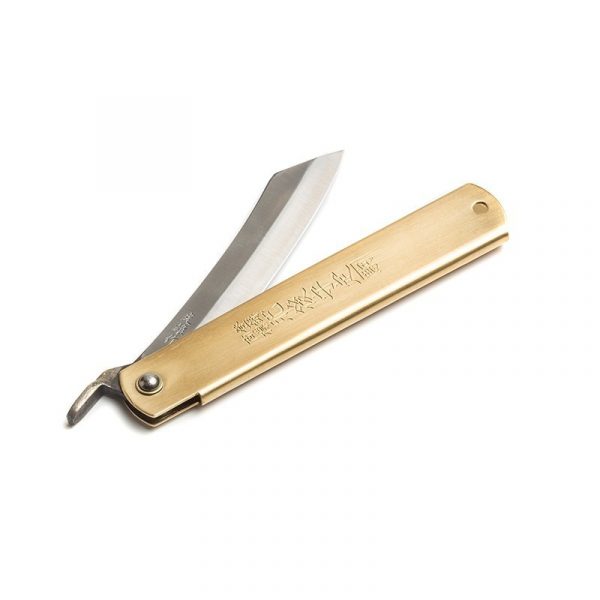 Wenn das Messer neu ist, kann die Klinge etwas gespannt sein, wird sich aber mit der Zeit lockern. Wenn er zu locker wird, kann er durch Hämmern auf den Zapfen gestrafft werden – ein großes Merkmal des Higonokami-Messers.