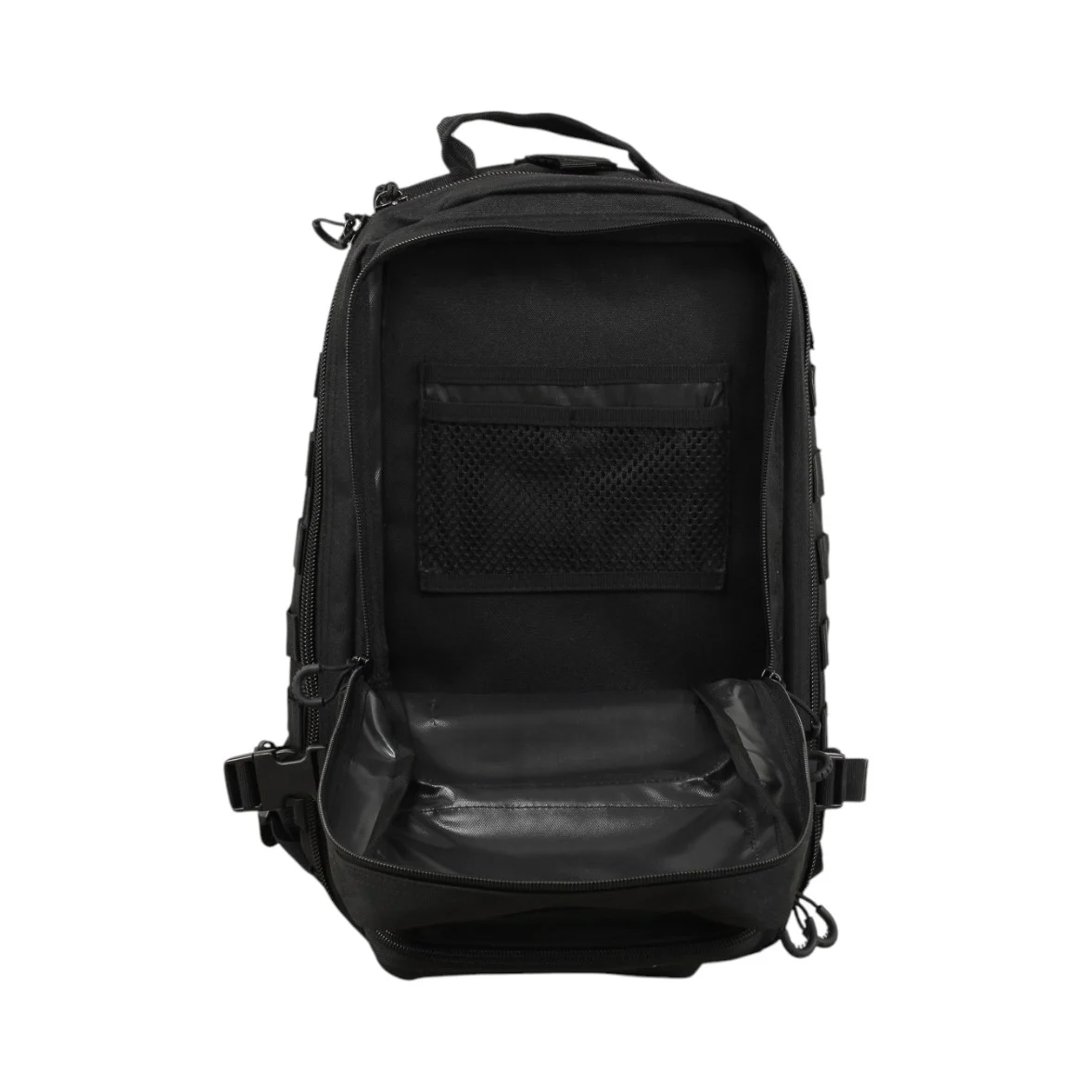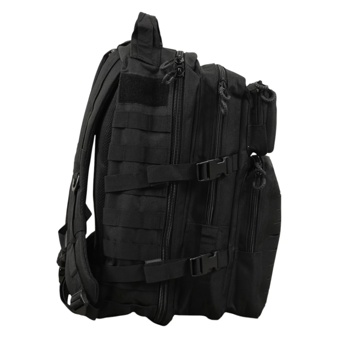 This black military backpack is perfect for hiking, camping, survival operations or professional missions. Its Molle system lets you attach additional pockets as needed. The capacity-to-size ratio of this 40L bag makes it the affordable solution for all outdoor enthusiasts, military surplus lovers and demanding professionals.