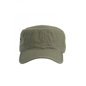 The cap is made up of four pieces assembled with semicircular stitching to provide a degree of rigidity. The bottom and brim of the hat are covered with a cotton twill band.