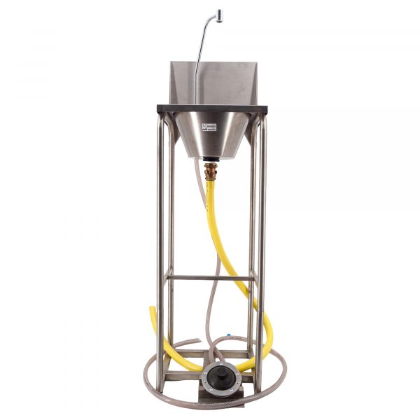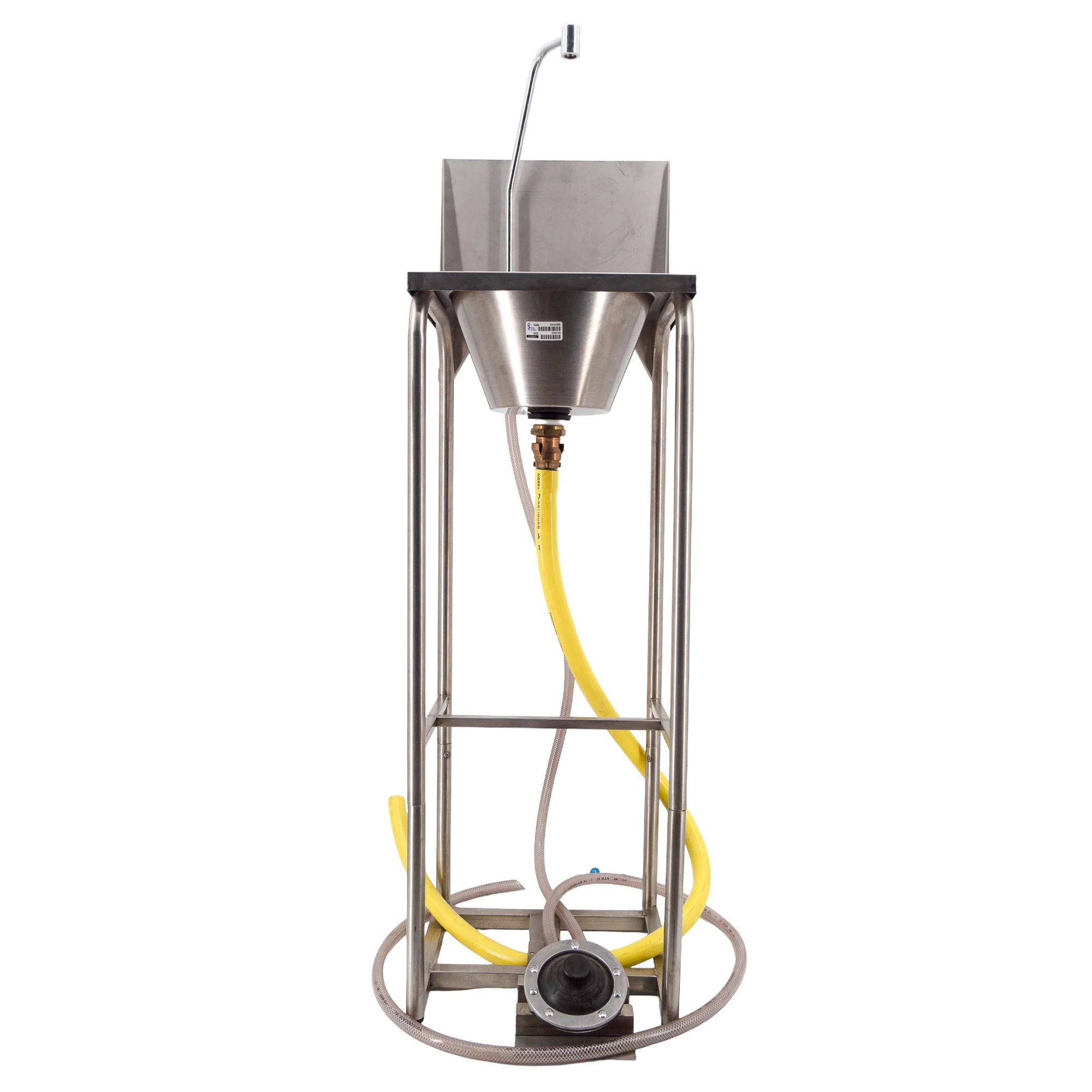 Stainless steel camp washbasin for connection to a water supply in your garden or out in the wild.