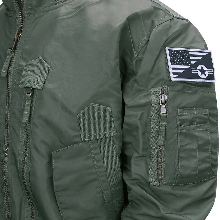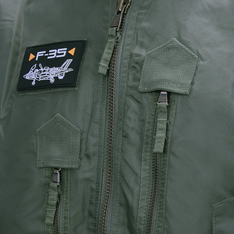 This green F-35 aviator jacket combines style and performance. Designed for military fashion and outdoor enthusiasts, it combines pilot aesthetics with precise tactical functionality.
