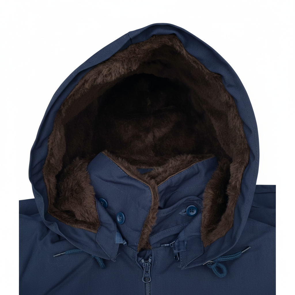 - Ribbed cuffs & collar tab: cold-air barrier.