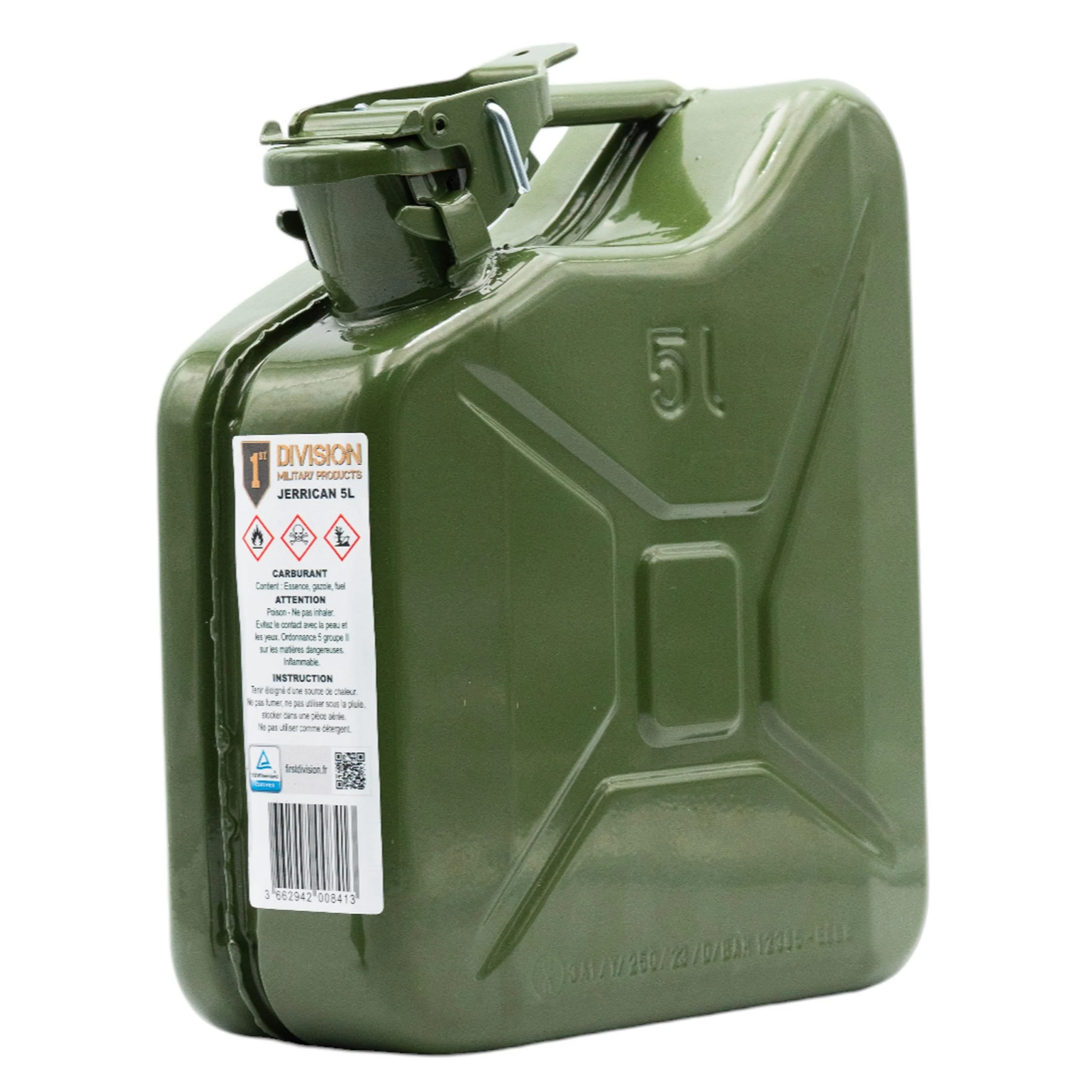 This 5-liter metal jerrycan is ideal for transporting fuel.