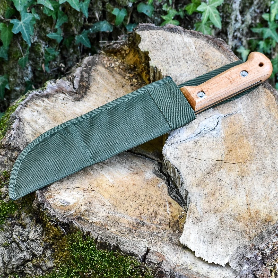 El machete sólo puede llevarse por motivos legítimos (senderismo, jardinería, trabajo profesional). Llévalo siempre en su funda para cumplir la ley. No debe ser utilizado por menores.