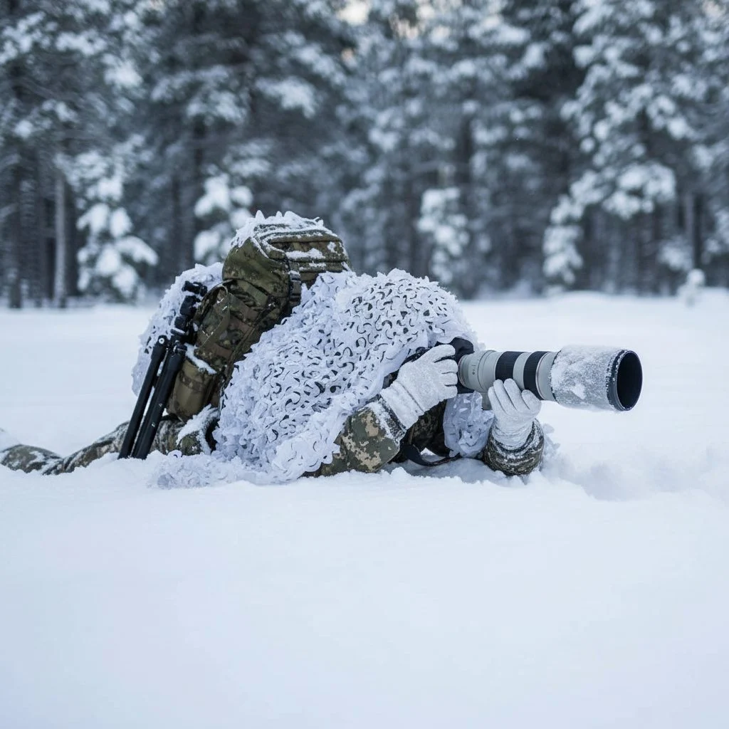 Gracias a su estampado de “nieve” 3D reversible, esta red de camuflaje 3D puede utilizarse en la terraza o en el bosque. Disfruta de una sombra fresca bajo la pérgola, de una cortina de diseño en el balcón o de un auténtico camuflaje durante una sesión fotográfica, una salida de pesca o de caza. Su diseño silencioso y antideslumbrante garantiza una discreción total, digna de una red militar.
