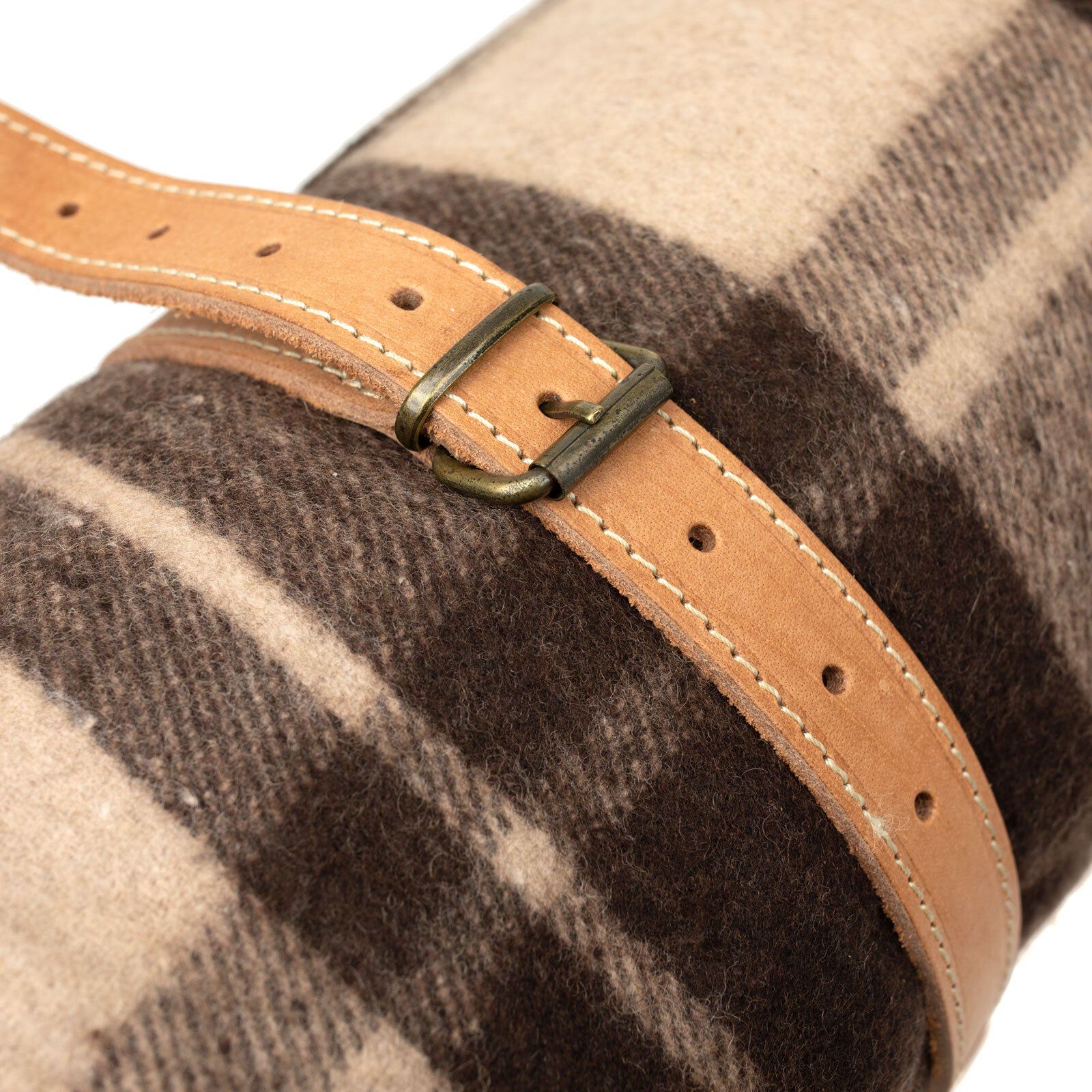 Cinghia di trasporto in pelle per coperta o sacco a pelo. Puoi trasportare facilmente la tua coperta grazie alla maniglia o agganciarla allo zaino.