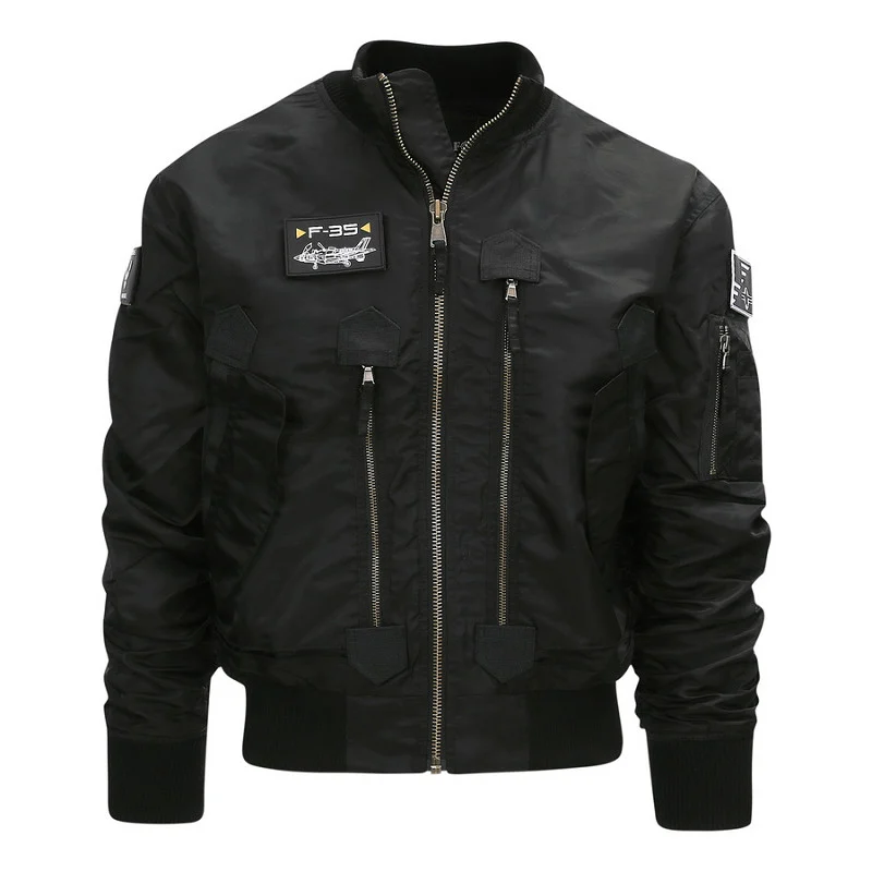 Con la sua vestibilità slim, le pratiche tasche e le toppe in PVC rimovibili, questa giacca da pilota unisce moda e praticità. Ideale per affermare il tuo stile outdoor o militare ogni giorno.