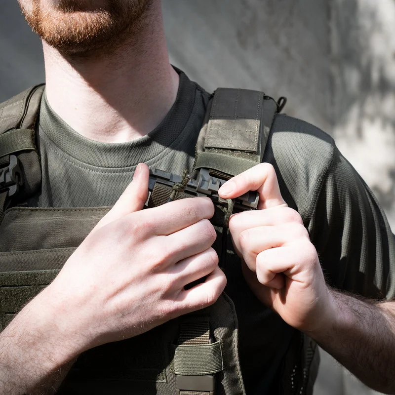 - Fibbie a sgancio rapido: sistema di fissaggio rapido e robusto per un uso tattico sicuro.