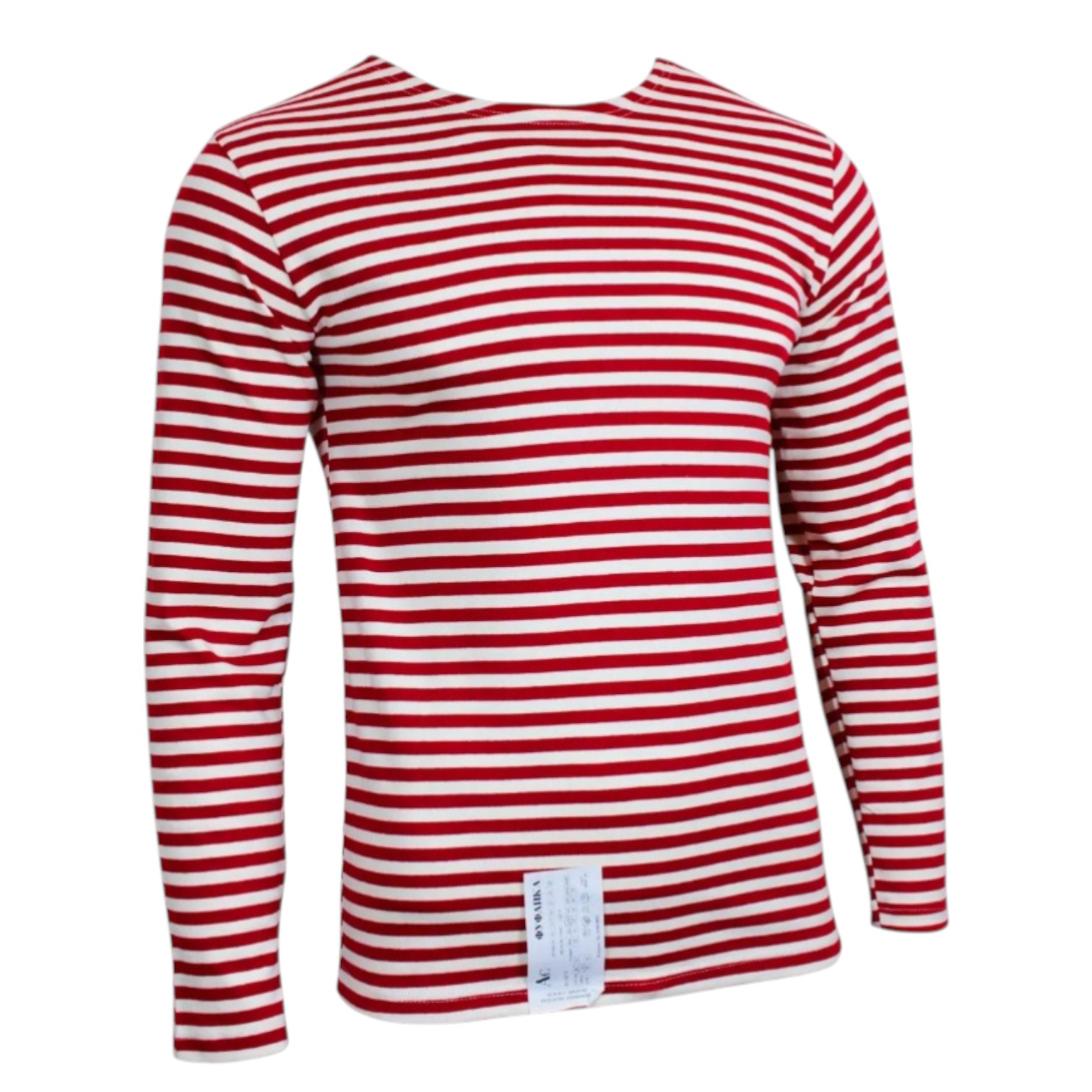 Le origini di questo indumento possono essere fatte risalire ai pescatori bretoni, la cui marinière a righe veniva utilizzata per distinguere i loro equipaggi. Adottato dai marinai della moderna marina francese, si diffuse poi nella marina russa nel XIXᵉ secolo. La telnyashka a strisce blu divenne l’emblema dei marinai della Marina Imperiale, prima che venisse creata una varietà di colori, tra cui questo audace rosso.