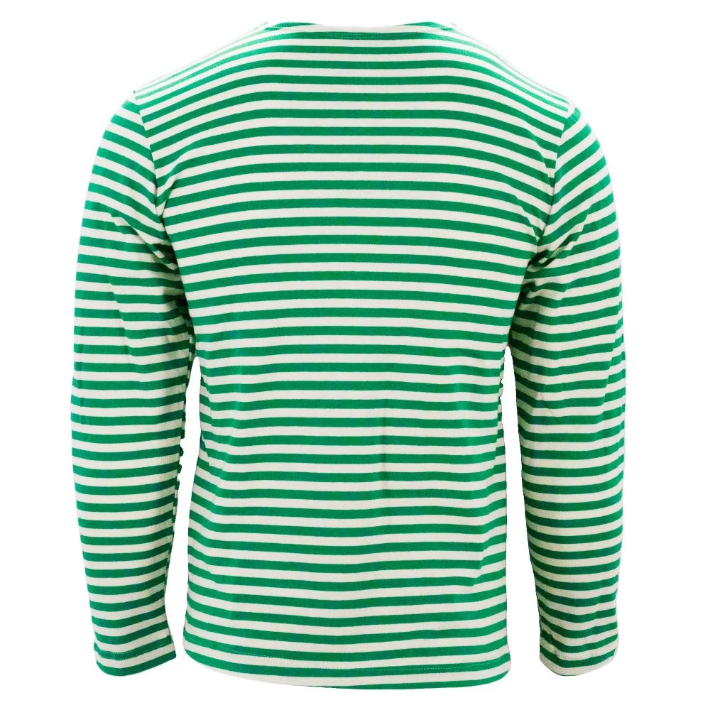 Lavorato a maglia con una macchina a 2 aghi, il nostro TELNYASHKA® marinière è realizzato in un cotone naturale non sbiancato, morbido, traspirante e con un’autentica tonalità ecru e verde. Questo cotone pesante da 241 g/m² è caldo e resistente e mantiene la sua forma lavaggio dopo lavaggio: un bene senza tempo che gli amanti dello stile marinaro cercano.