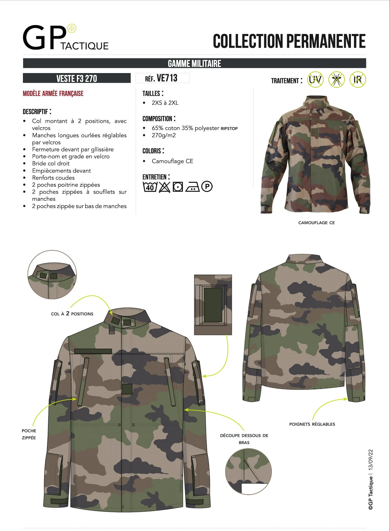 F3 Combat Jacket French Army Ripstop 270 g/m² - protezione tattica 62,00 TTC