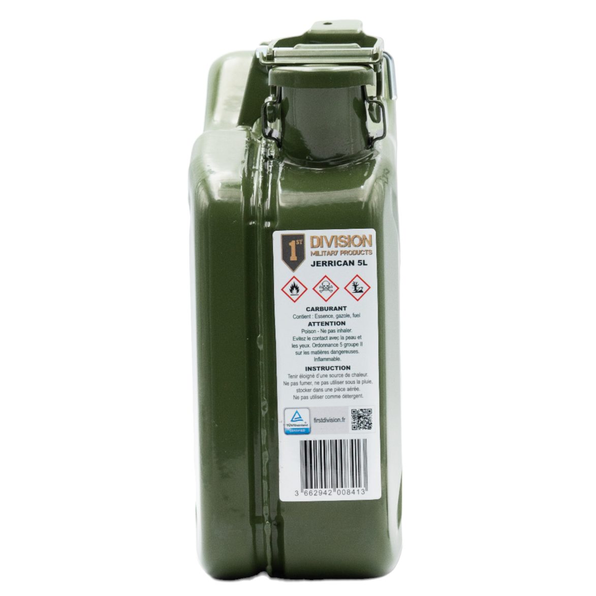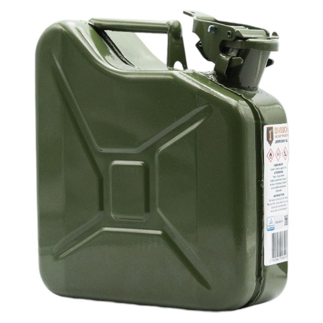 Questa tanica in metallo da 5 litri è ideale per il trasporto di carburante.