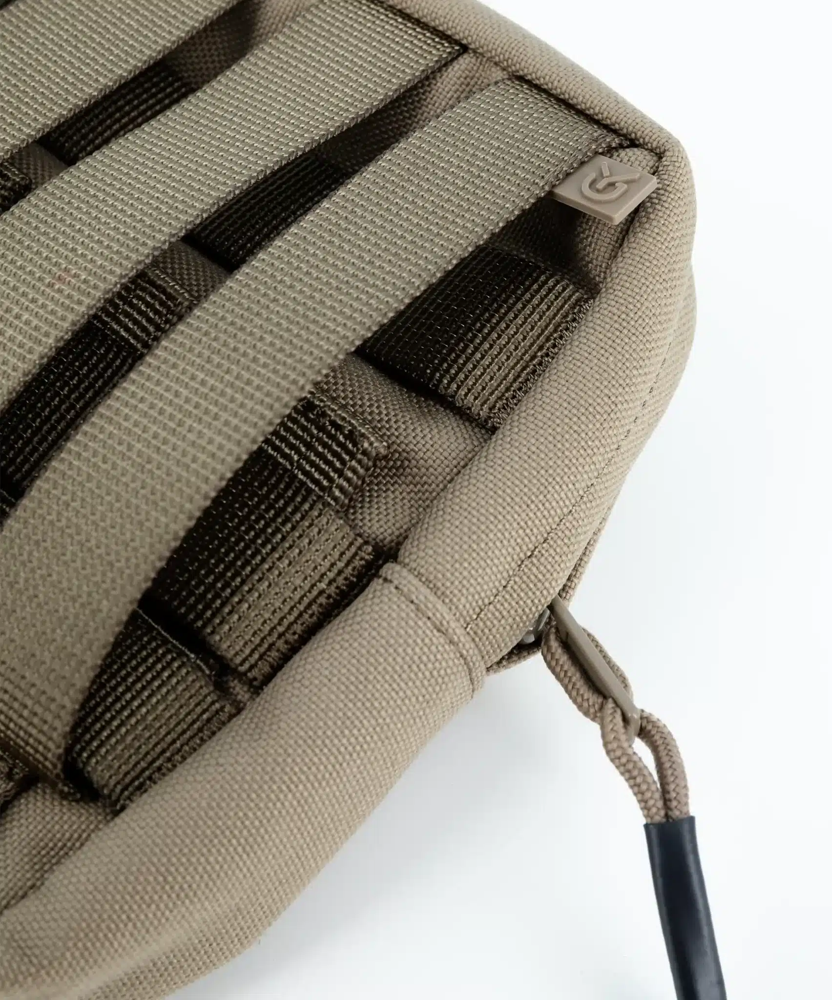 C’è anche un sistema MOLLE sulla parte anteriore. Questo permette di aggiungere altri accessori. In questo modo puoi essere modulare quanto vuoi.