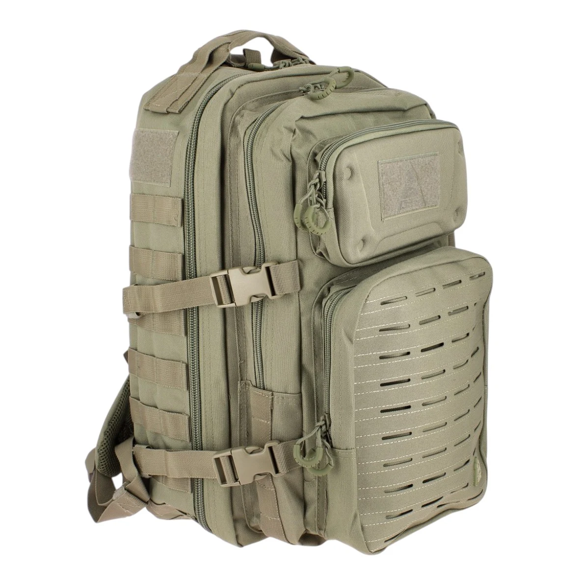 Le due tasche anteriori offrono un’organizzazione flessibile: la prima è dotata di un sistema Molle lasercut per accessori militari e tattici, mentre la seconda è dotata di un guscio rigido per proteggersi dai danni. La tasca posteriore semirigida consente di accedere rapidamente alla borraccia, al tablet o a piccole attrezzature EDC senza dover rimuovere la borsa.