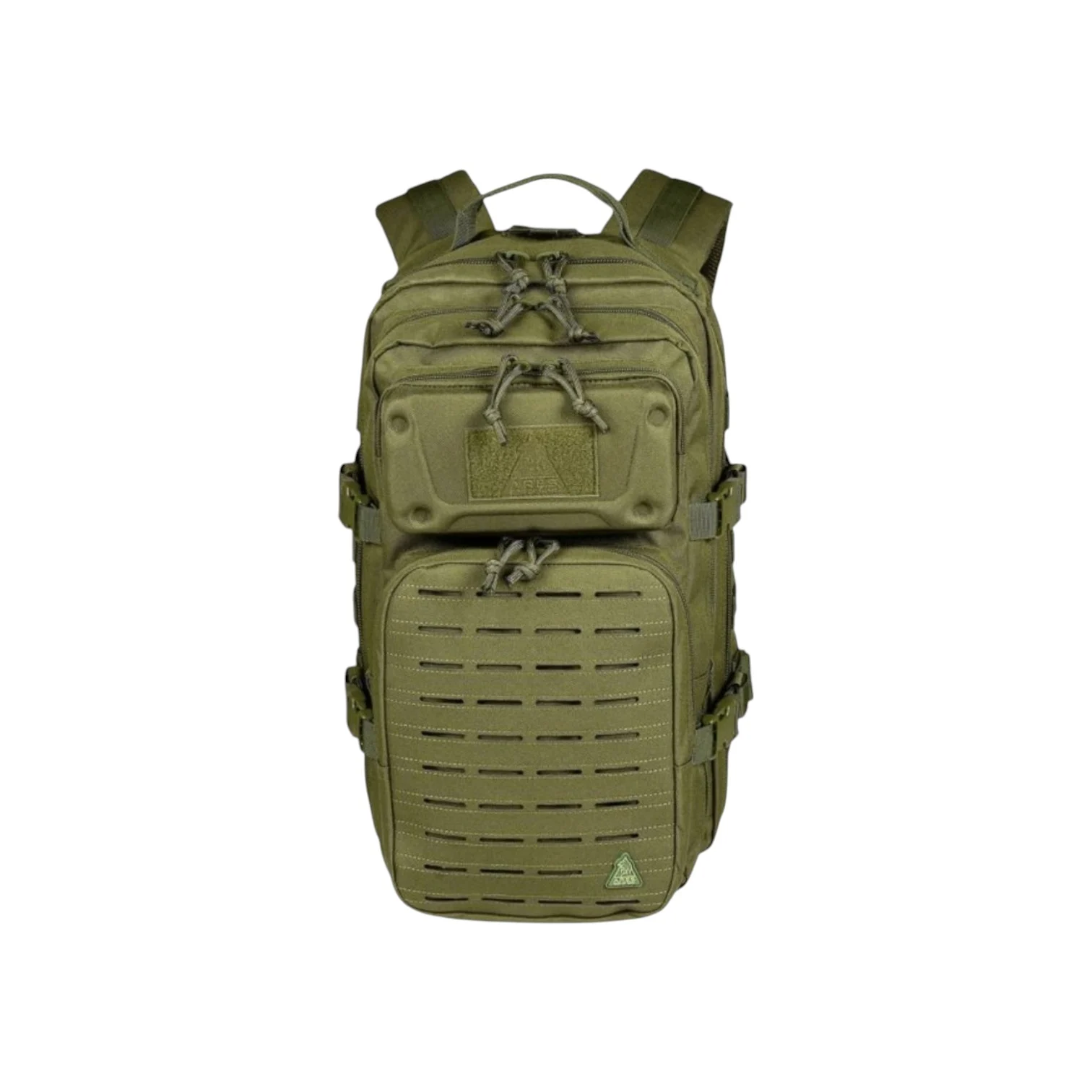 La tasca posteriore semirigida consente di accedere rapidamente a una bottiglia d’acqua o a un tablet. Due scomparti sul davanti: uno con un sistema MOLLE tagliato al laser per il fissaggio modulare di piccoli oggetti e l’altro con un guscio rigido per proteggere i piccoli oggetti sensibili (telefono, GPS, occhiali). Le cinghie di compressione laterali mantengono l’attrezzatura saldamente in posizione.