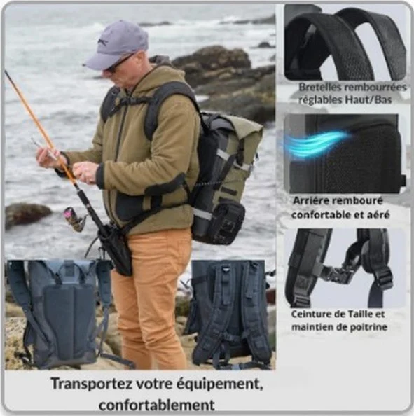 🧳 Trasporto confortevole: schienale imbottito, cinghie regolabili, cintura, cinghia pettorale.