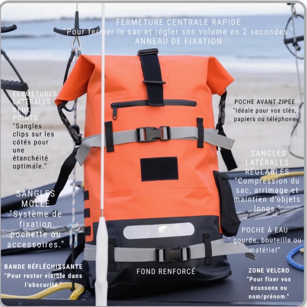 - Capacità modulare: da 20 L (cabina) a 40 L – ideale come borsone impermeabile o borsa da viaggio impermeabile.