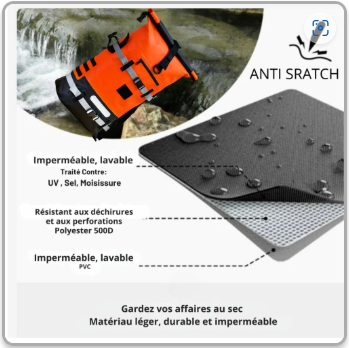 - Tessuto in PVC 500 D ad alta resistenza, perfettamente impermeabile per 20 L e oltre.