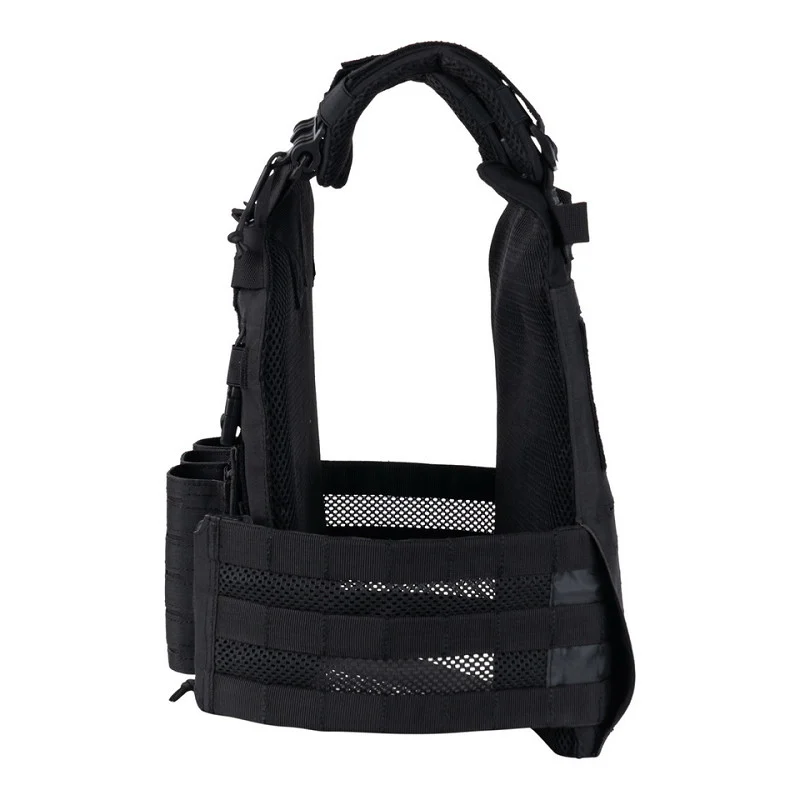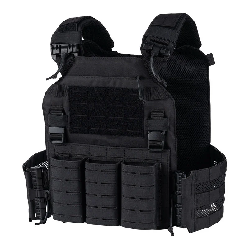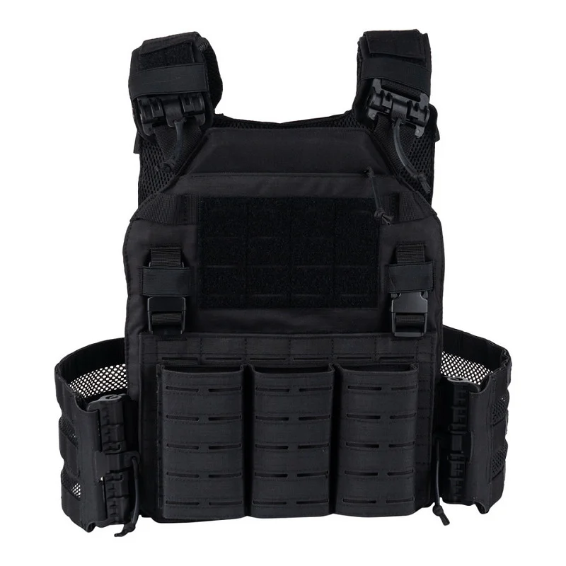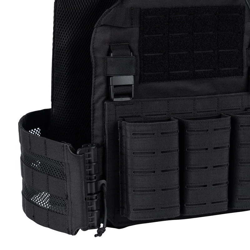 MOLLEレーザーカットシステムを採用した500Dコーデュラ製タクティカルプレートウエストコート(ブラック)。過酷なミッションに対応するプロ仕様のプロテクション。