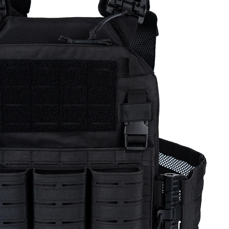 QR Plate Carrierのレーザーカットを施したブラックのタクティカルウエストコートは、過酷な任務や対応に携わるプロのためにデザインされた究極のプロテクションです。この頑丈な500Dコーデュラ製タクティカルウエストコートは、卓越したモジュール性と優れた防弾性を提供します。ダミーアーマープレート2枚、レーザーカットMOLLEシステム、戦略的アタッチメントポイントを装備し、すべてのタクティカル装備に最高のモジュール性を保証します。