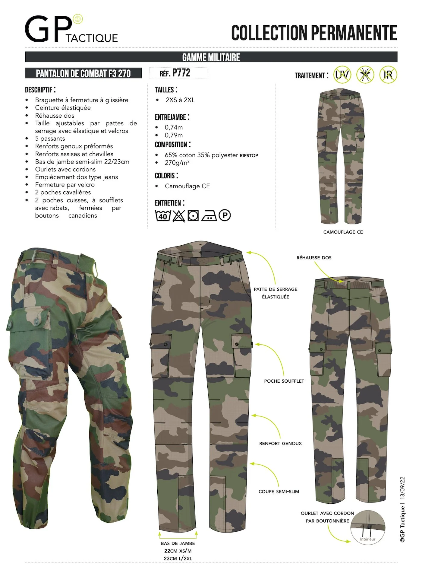 フランス陸軍の仕様とミリタリーサープラスの期待に応えるようデザインされたT3ネコ型トレリス・パンツは、最大限のプロテクションと戦術的機動性を兼ね備えている。270g/m²のリップストップ・コットン/ポリエステル素材は、荒れた地形や激しい戦闘状況でも破れにくい。シート、膝、足首の補強は、険しい地形や重いXXXL装備の下を移動する場合でも、ズボンの寿命を延ばします。