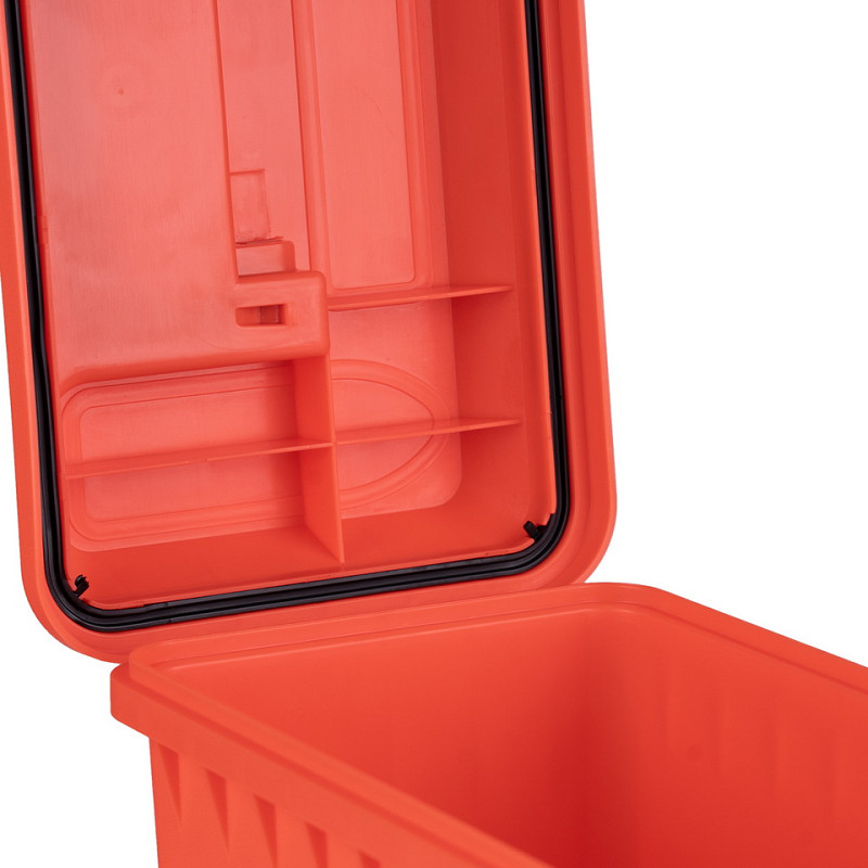 Son joint périphérique assure une parfaite étanchéité, bloquant poussière, sable et humidité. Le couvercle se verrouille fermement; ajoutez un cadenas (non fourni) pour un contenu totalement sécurisé.