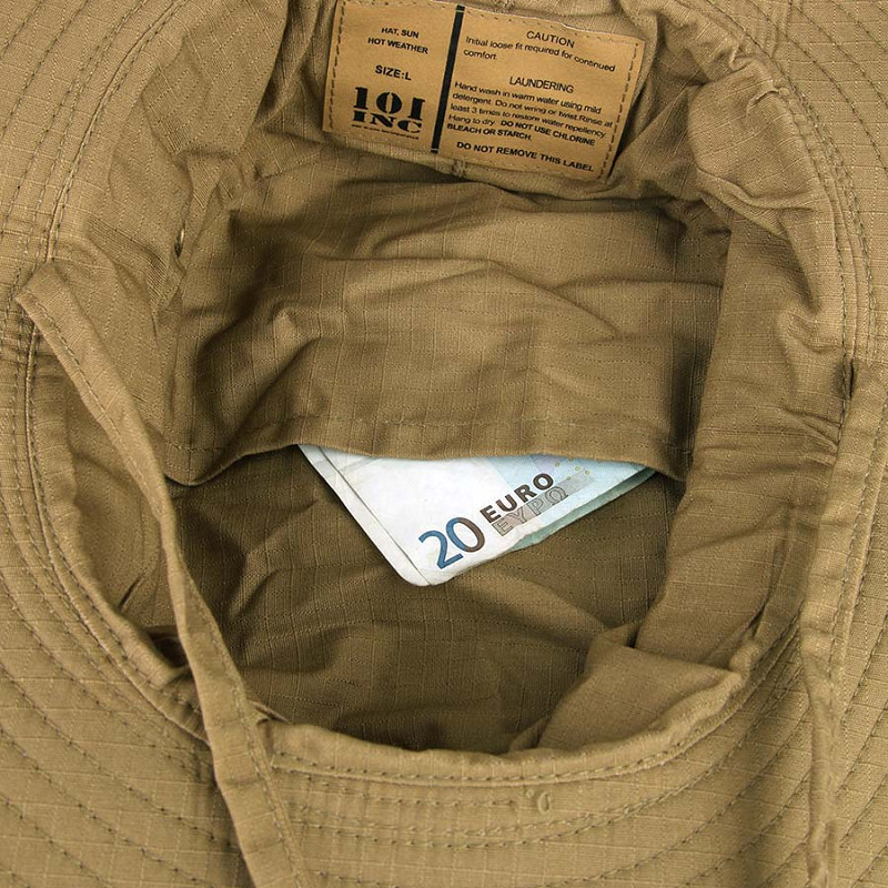Une fonction cachée distinctive du chapeau de brousse Le Baroudeur : un compartiment interne discret pour rangement sécurisé d’argent ou de petits objets importants. Cette poche secrète intégrée dans le chapeau tactique ne gonfle pas l’équipement visuel.