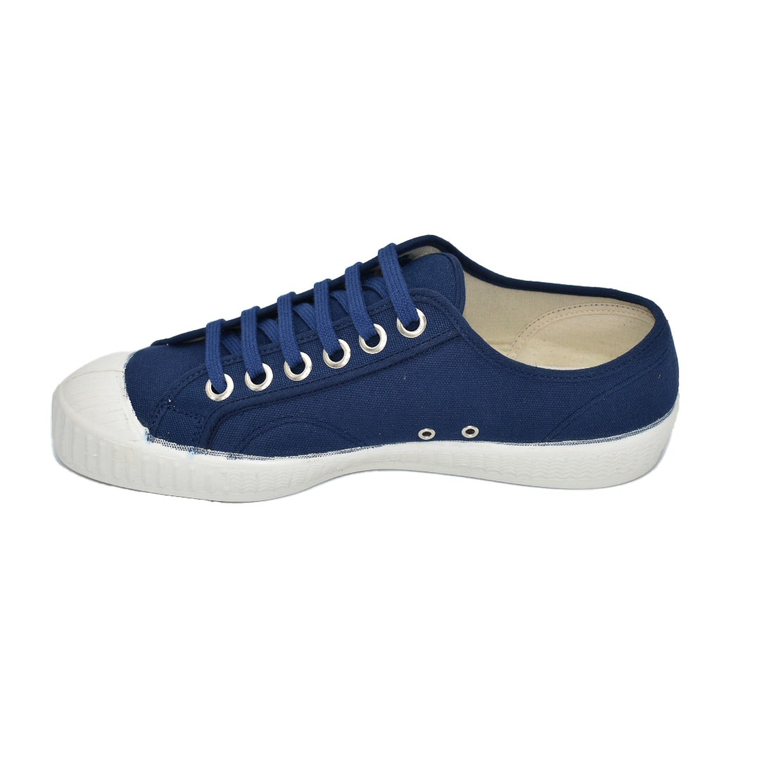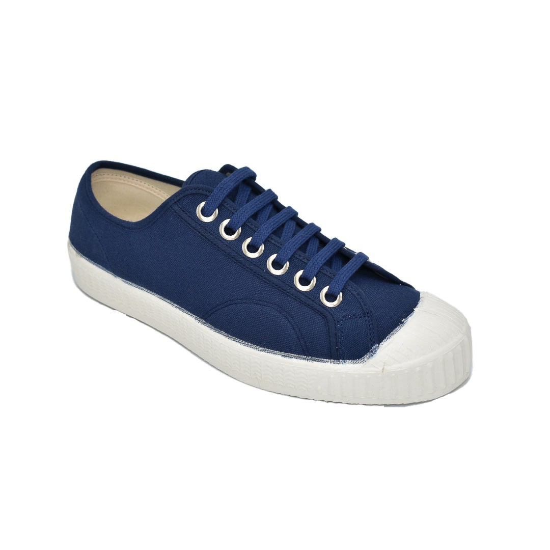 Pour préserver la toile et la couleur navy, nettoyez vos chaussures vintage à la main avec une brosse douce, de l’eau tiède et un savon neutre. Laissez sécher à l’air libre, lacets retirés et semelles intérieures sorties. Évitez le lavage en machine et l’exposition prolongée au soleil direct afin de conserver l’éclat du coton.