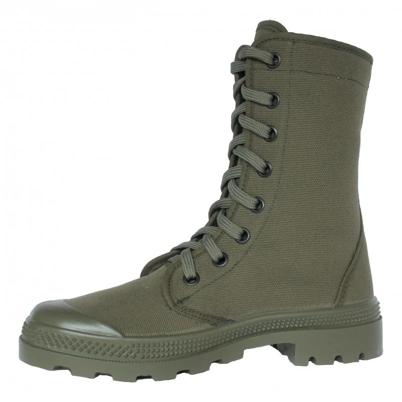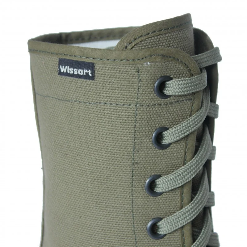 Ces chaussures en toile sont inspirées des chaussures de brousse de l’Armée française type “Wissart”, “Pataugas” ou “Palladium”.