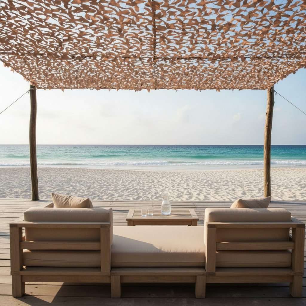 Filet de camouflage renforcée : filet ombragé beige et sable pour terrasse et décoration
