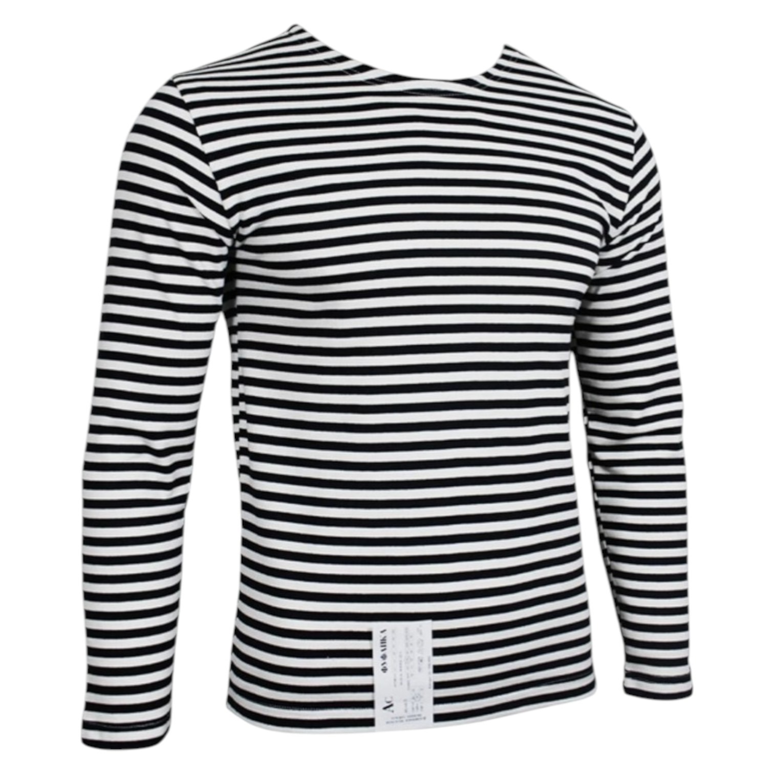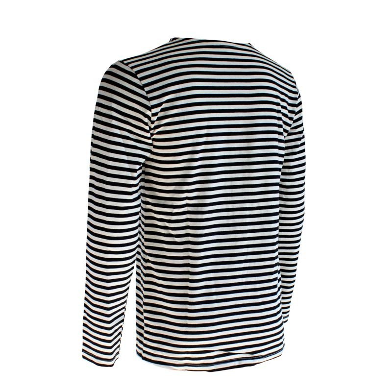 Inspirée de la marinière bretonne puis adoptée par la marine impériale russe au XIXe siècle, la telnyashka rayée bleu et blanc a traversé les époques. Sous la Seconde Guerre mondiale, elle symbolise le courage de la marine soviétique et des forces spéciales. Aujourd’hui, cette telnyashka noire (sous-mariniers russes) revisite la tradition pour un look urbain, sans renier son ADN militaire.