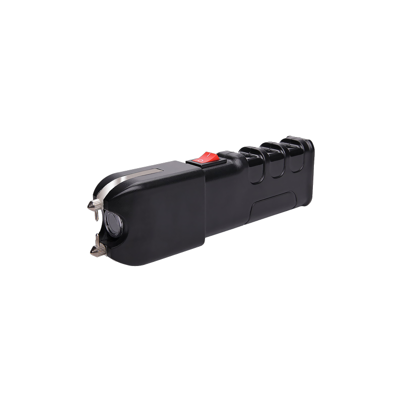 Si ses dimensions ne favorisent pas la discretion, ce shocker privilegie en revanche la qualite de prise en main. Il dispose d’une poignee dotee d’emplacements ergonomiques pour les doigts, aussi appeles finger loops, qui renforcent les capacites de prehension. Le bouton declencheur se trouve naturellement au niveau de l’index un peu a la maniere d’un pistolet, ce qui rend la manipulation tres rapide.
